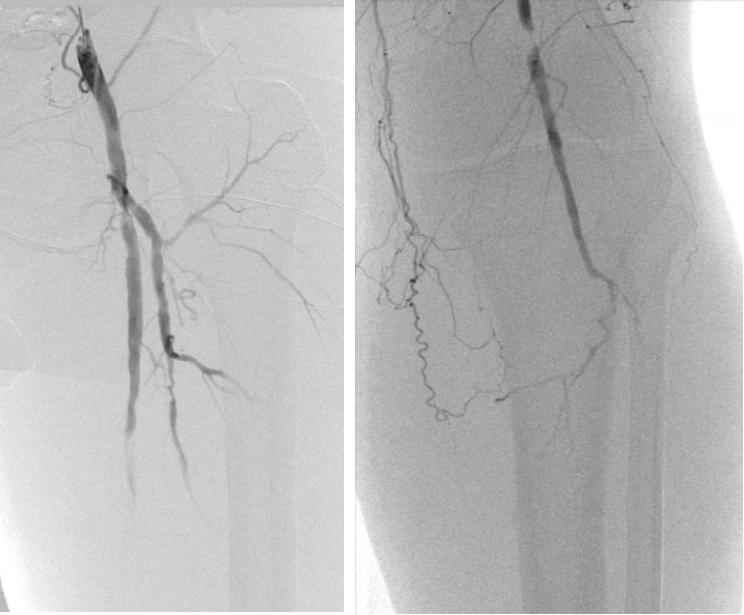 左侧下肢间歇性跛行,R3,DM,肌酐280