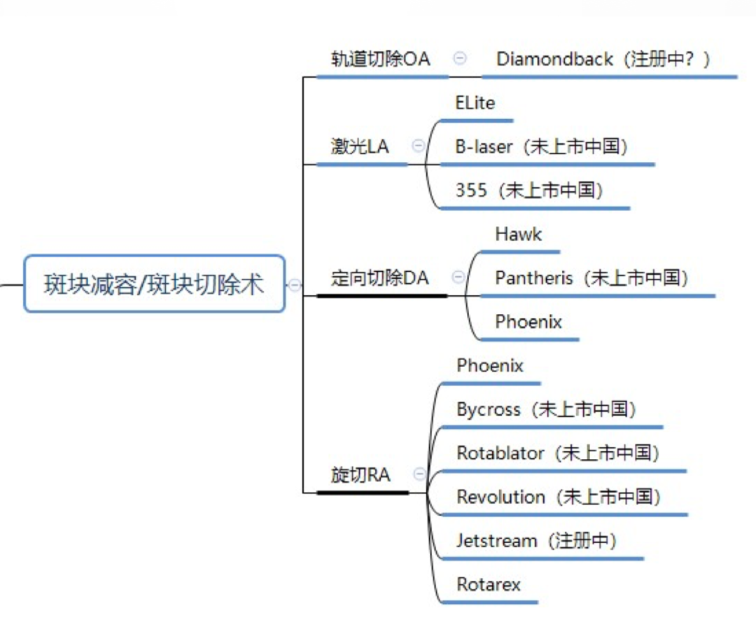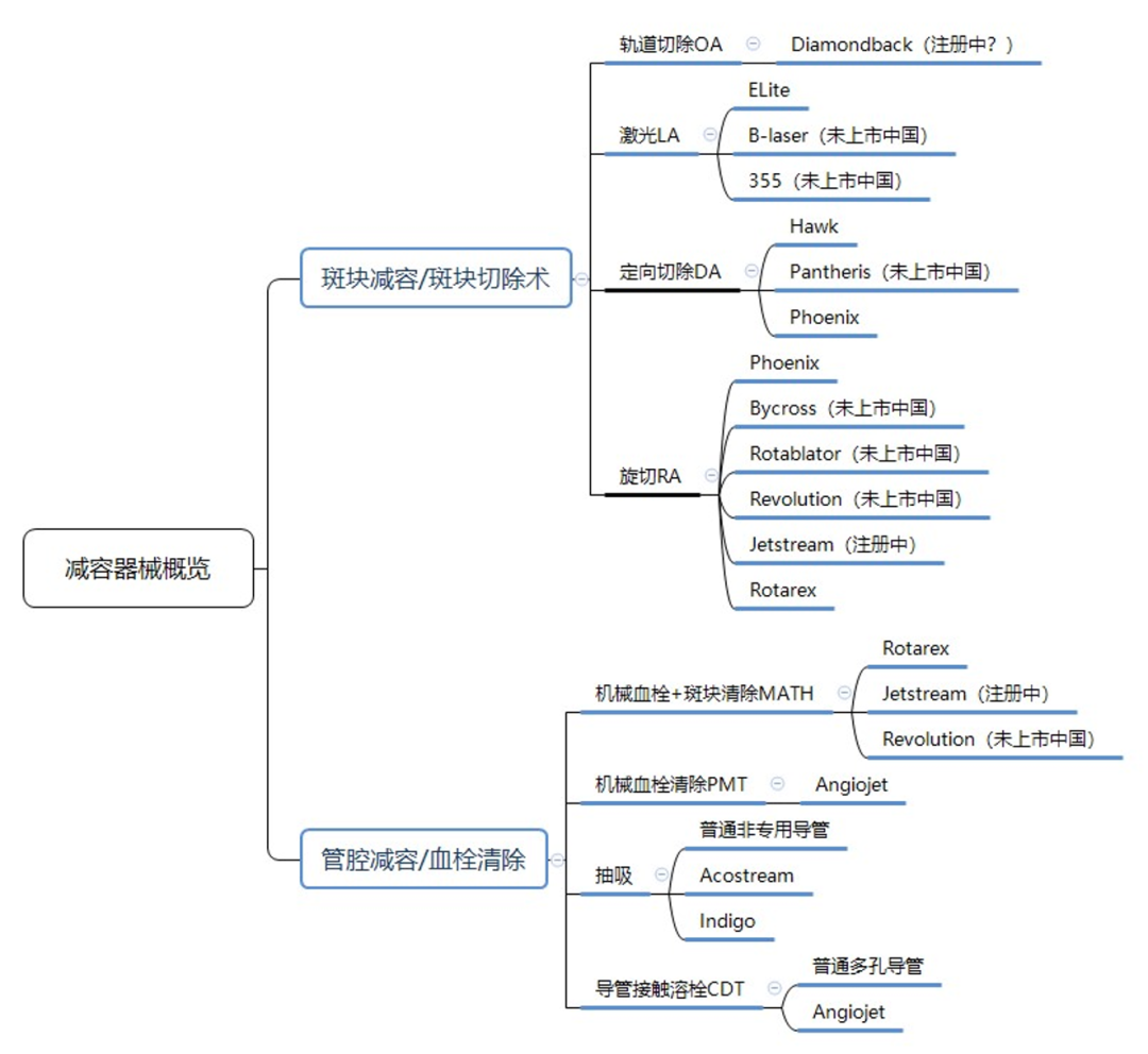斑块减容/斑块切除术:包括激光LA、ELite、B-laser、Hawk、定向切除DA、Pantheris、Phoenix、Bycross、Rotabator、Revolution、Rotarex等。