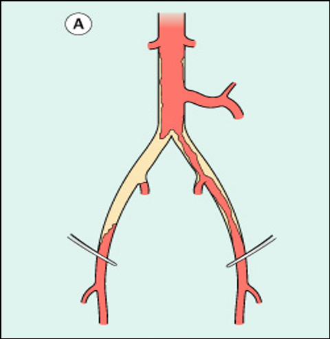 适应证:适用于累及髂总动脉开口及远端腹主动脉的病变。