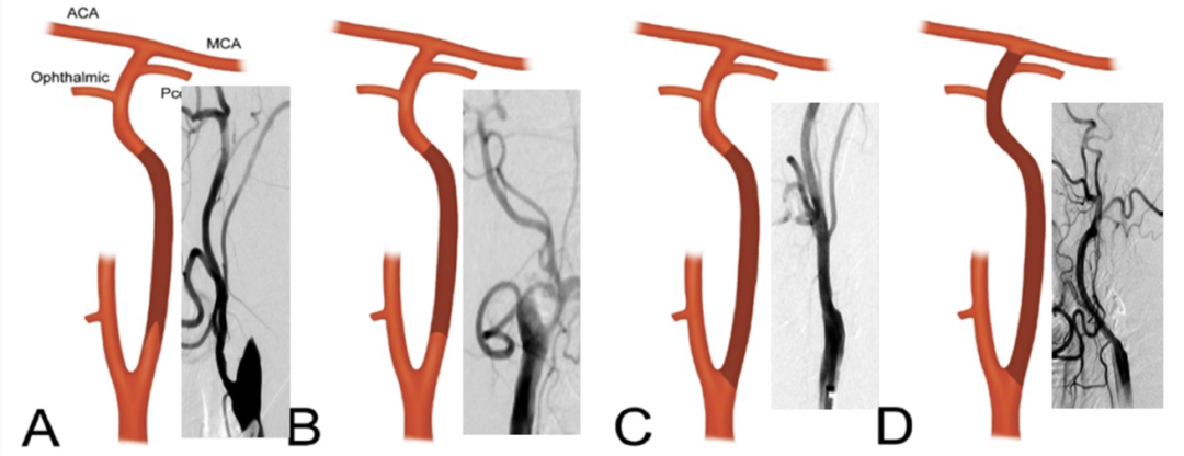 锥形残端、远端返流至海绵窦段ICA、颈段ICA无严重扭曲者更适合腔内开通。