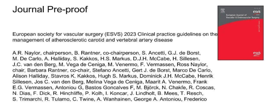ESVS发布的动脉粥样硬化性颈动脉和椎动脉疾病的防治最新指南(2023版)为全球颈动脉狭窄治疗提供重要指导建议。
