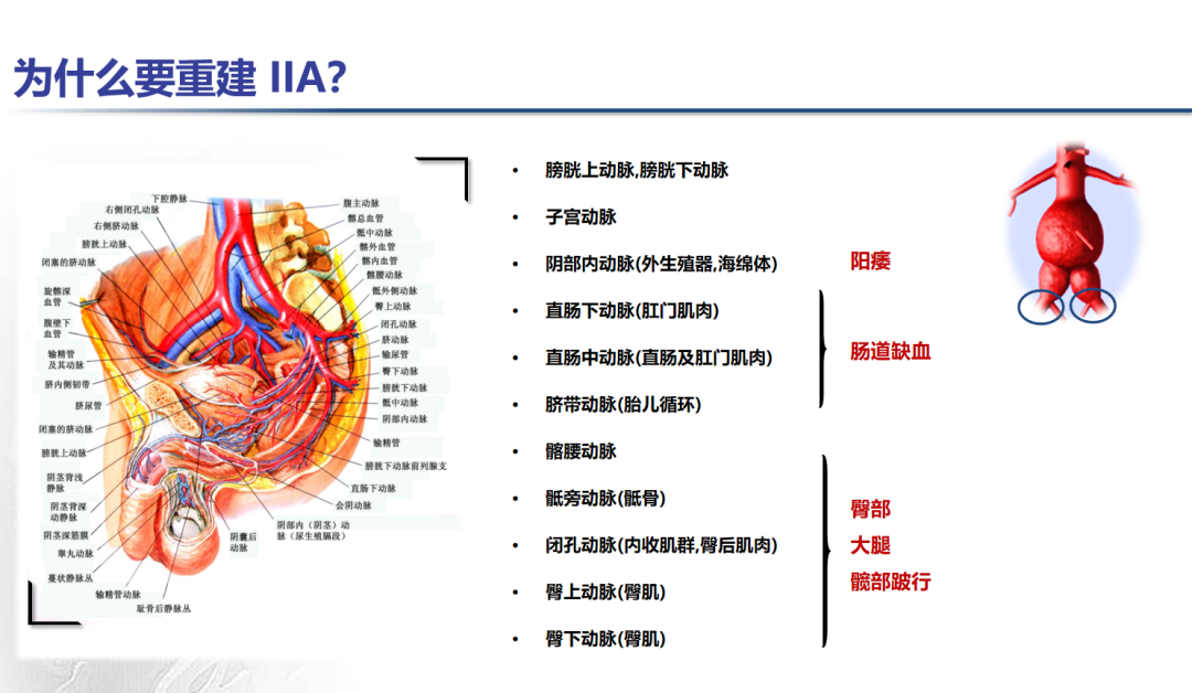 腹主动脉瘤(AAA)合并髂动脉瘤是血管外科常见疾病,约15%-40% 的腹主动脉瘤患者累及髂动脉(尤其是髂总动脉)。当髂内动脉因动脉瘤、狭窄或手术栓塞导致闭塞时,可引发臀肌跛行(发生率27%-52%)、性功能障碍(男性10.2%)、肠道缺血等严重并发症。