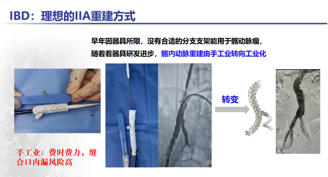 随着腔内器械的发展,髂内动脉重建技术从“手工改装时代”迈向“工业化精准时代”,如髂动脉分支支架(IBD技术)通过预制化分支支架系统,同步重建髂内动脉与髂外动脉,避免传统技术的手工误差。