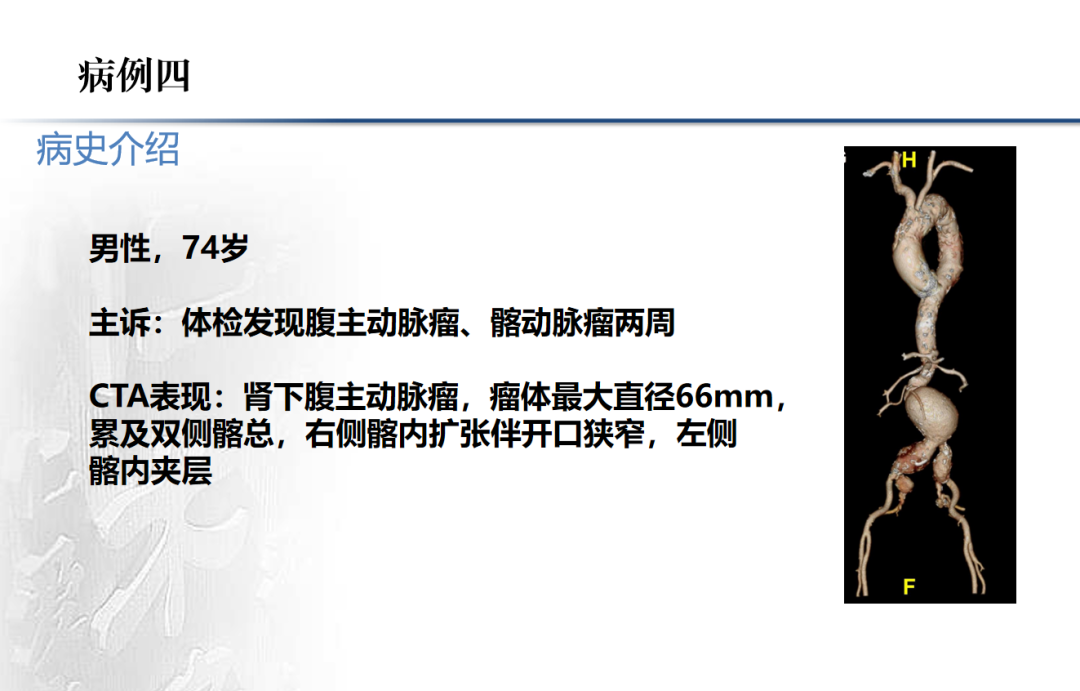 诊断:72岁男性,EVAR术后髂动脉瘤伴髂内动脉瘤。