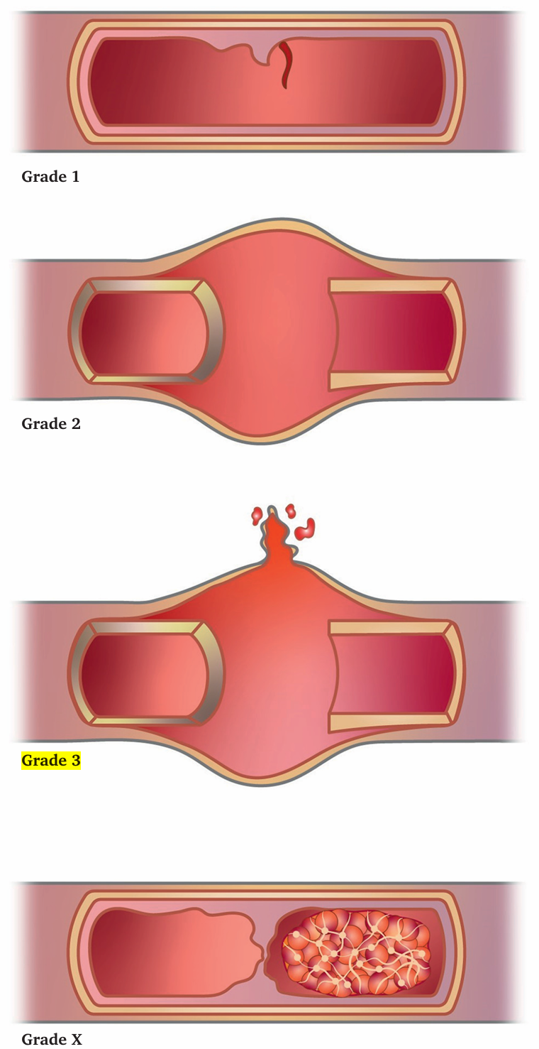 2级:外壁破裂伴有限制性出血(例如,假性动脉瘤)