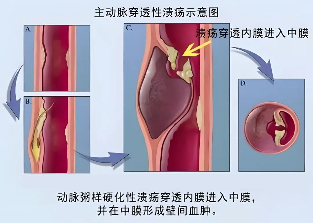 形成壁间血肿(IMH)或主动脉夹层:增加了血管破裂风险,甚至会危及生命。
