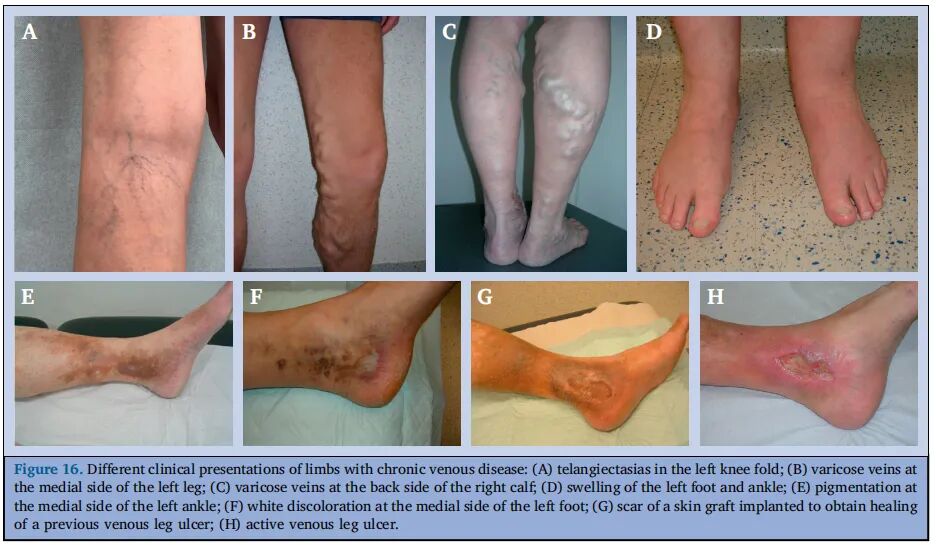 图16 慢性静脉疾病肢体的不同临床表现: