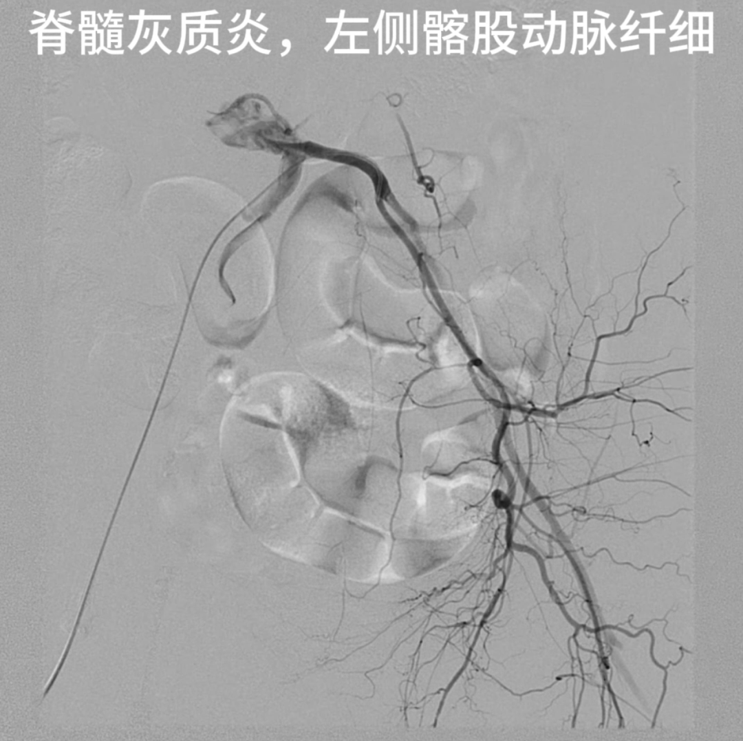 髂动脉解剖:双侧髂股动脉纤细,左侧髂总动脉直径<6mm、髂外动脉<4mm;右侧髂总动脉近端11mm、远端9mm,髂外动脉直径5mm,肠系膜下动脉直径1.5mm。