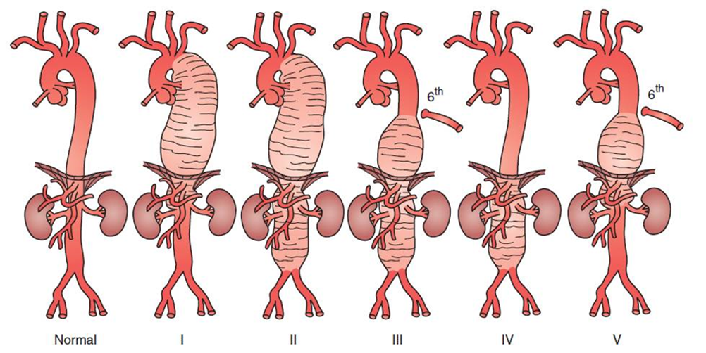 Crawford 分型:用于描述TAAA的累及范围,分为I至V型。
