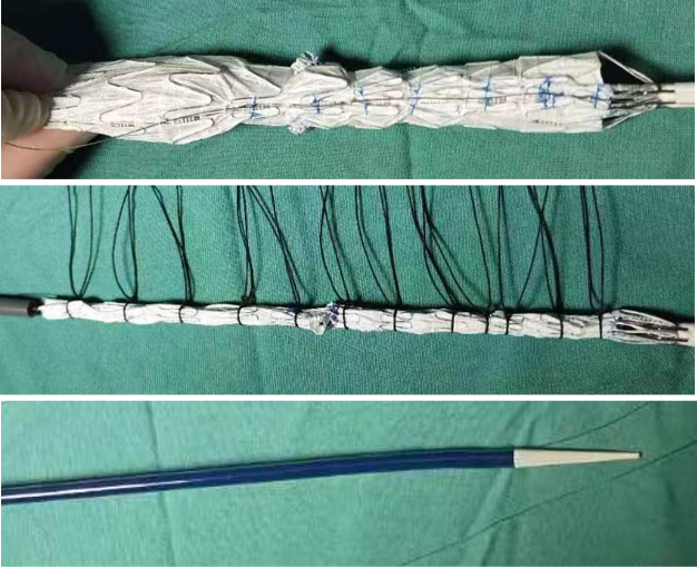 先将束径导丝规定在主体支架的背筋上,这样有助于维持支架的形态和稳定性。