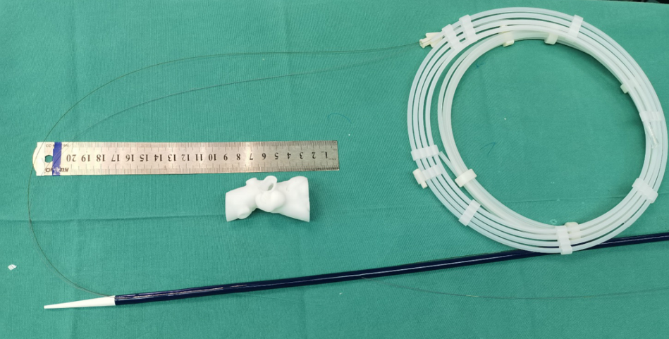 导丝束径采用0.014或是0.018导丝,导丝需要穿过外鞘;束径导丝可以从头端或是不从头端引出。