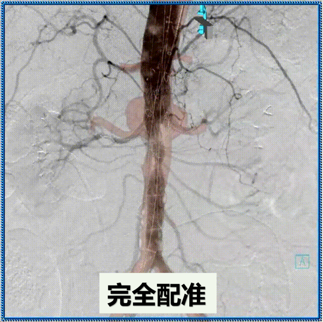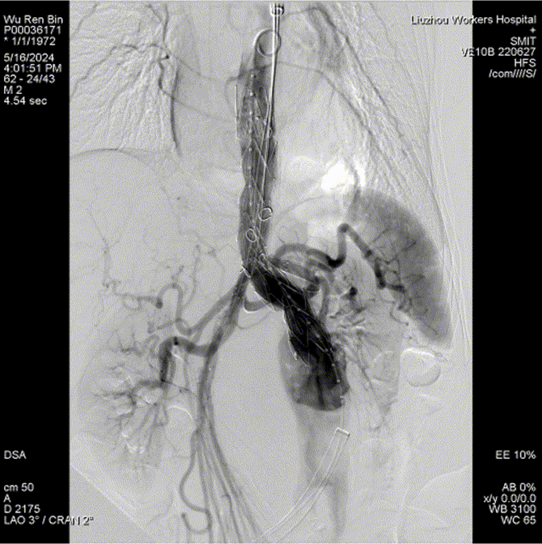 术后造影,支架形态良好,分支血流通畅
