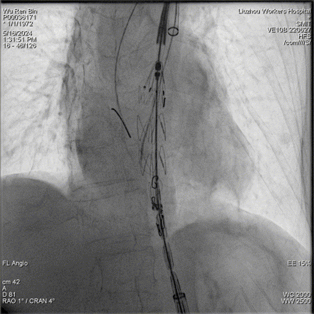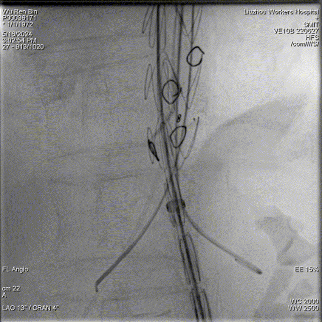 四分支重建后造影,各分支血流通畅