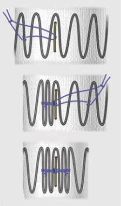 如主动脉弓部扩张,可根据情况进行内/外分支缝合:内/外分支可为靶血管提供更大连接范围和安全性;