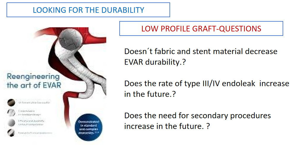 Low profile覆膜支架在处理复杂解剖结构,特别是血管入路挑战病变时表现出良好的通过性,大大提高了手术成功率,但也常常会有以下疑问,织物和支架材料会不会降低EVAR的耐久性? III/IV型内漏率将来会增加吗?从临床实践数据看,Minos覆膜支架表现优秀。