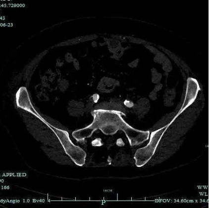 显示钙化病变重塑,双侧髂动脉管腔较前明显改善