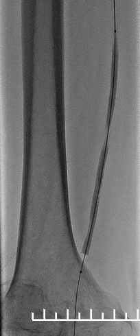 器械选择计划:0.035导丝/0.018导丝开通,普通球囊管腔准备,LUTONIX 035紫杉醇药物涂层球囊处理病变段。
