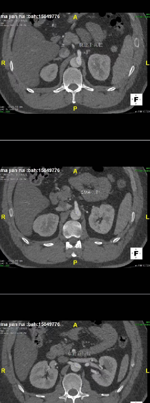 33岁肥胖患者(220斤),男性,合并重症鼾症,夹层破口位于主动脉弓小弯侧,假腔从降主至右髂外,多处破口,假腔体积大且累及右肾动脉,胸腔渗出多,呼吸功能差。