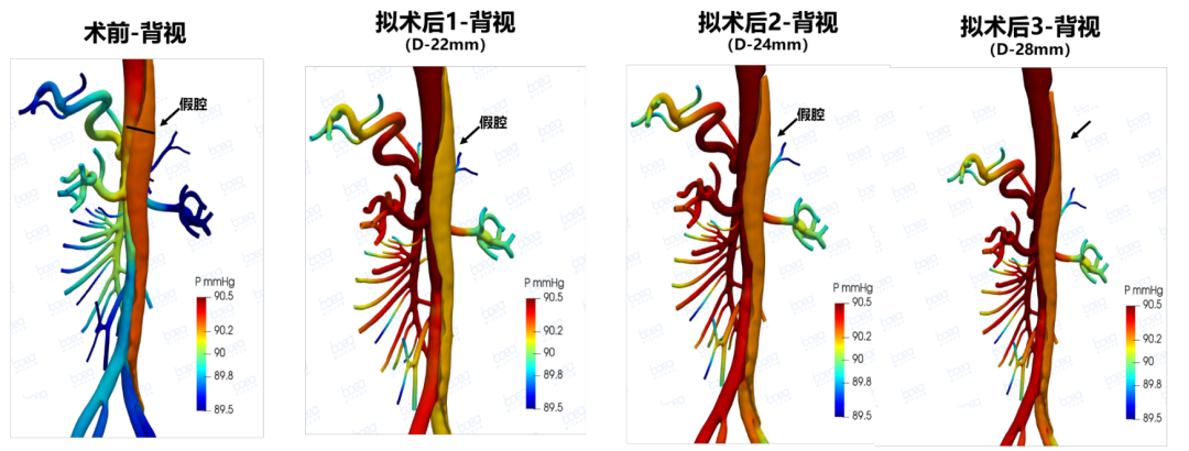 远端供血压力变化预测:评估不同口径支架对远端供血压力的影响。