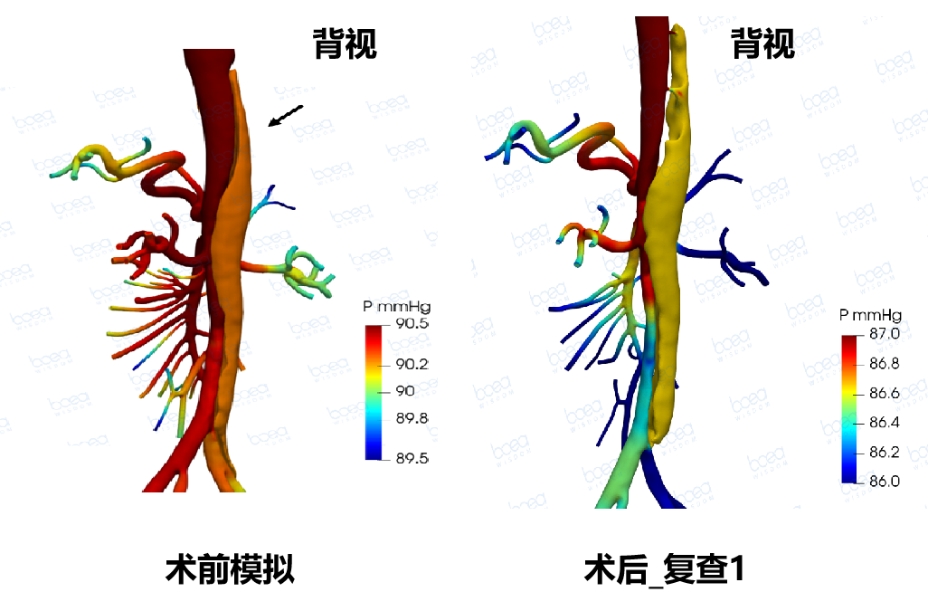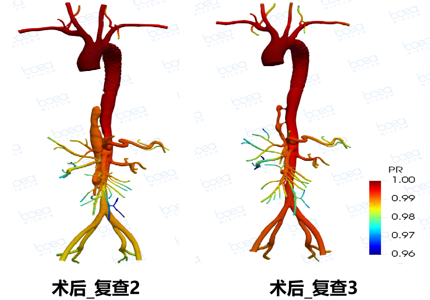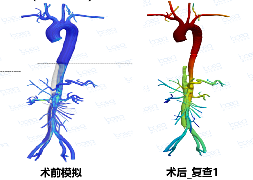 1. 血管重塑验证:术后复查显示真腔恢复与术前规划预测一致,验证了术前规划的有效性。