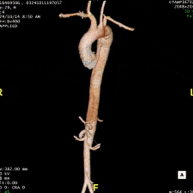 28岁男性,急性复杂型B型AD,急诊TEVAR治疗