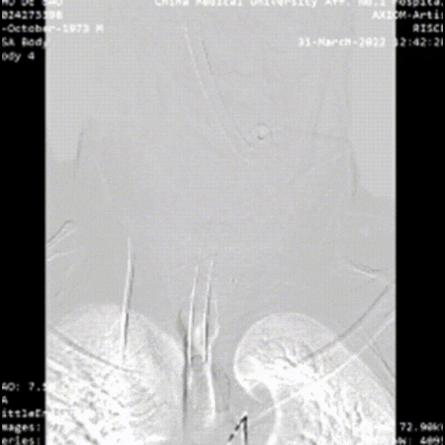 夹层累及股动脉(支架入路),需要参考术前CT,在彩超引导下穿刺入真腔,或者行股动脉剖开,直视下辨认真假腔。