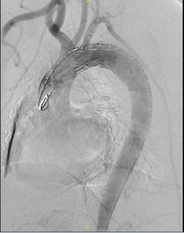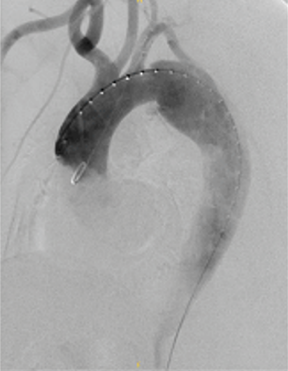 亚急性期:症状稳定、血压控制,逆撕血肿逐渐吸收或不完全吸收,可选择TEVAR或开放手术、TEVAR +弓上分支重建。