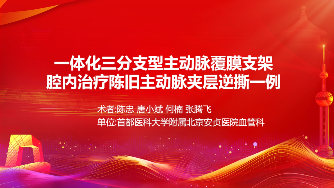本次大会期间,首都医科大学附属北京安贞医院唐小斌教授与各位专家同道分享介绍了《一体化三分支型主动脉覆膜支架腔内治疗陈旧性主动脉夹层逆撕一例》。由陈忠教授领衔,唐小斌、何楠、张腾飞教授共同协作成功完成了全球首例国内自主研发FixTa一体化三分支型主动脉覆膜支架FIM入组,为该产品的安全性有效性验证和腔内弓部分支重建的治疗探索积累了宝贵的临床经验。欢迎阅读。