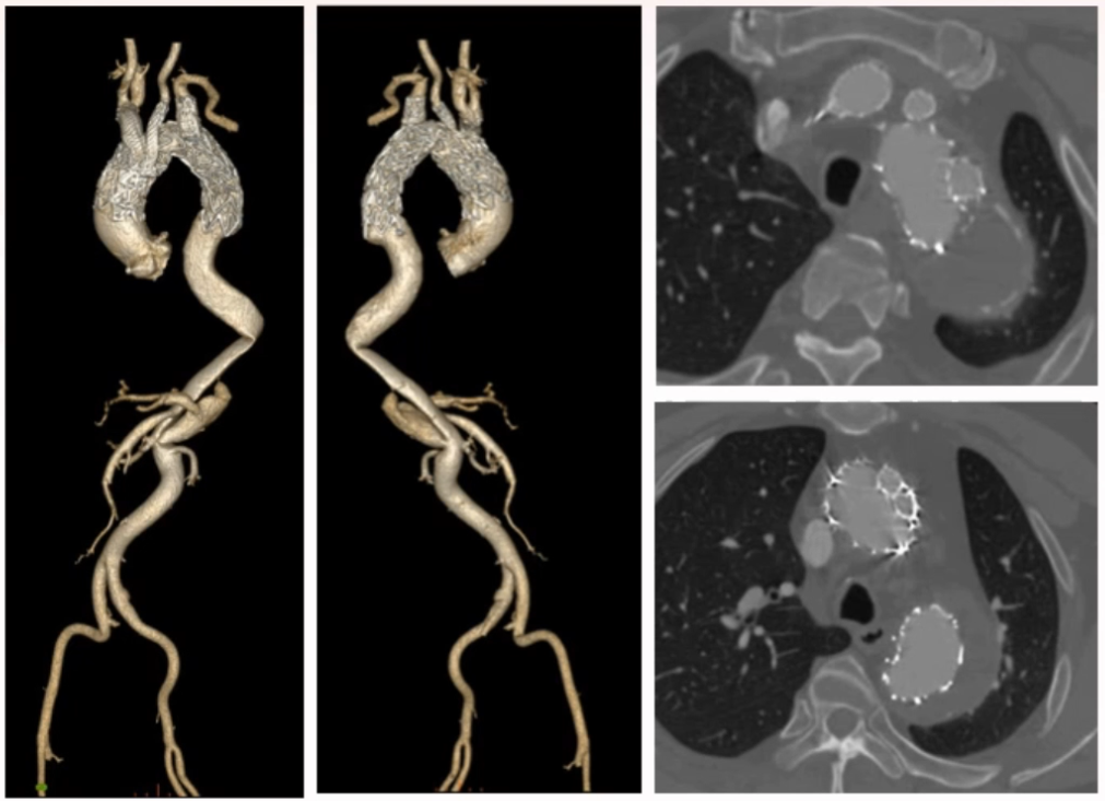1. 此病例的成功完成,验证了该新型三分支覆膜支架系统的创新设计突破了传统腔内治疗禁区,在治疗复杂主动脉弓病变中的显著优势和潜力。