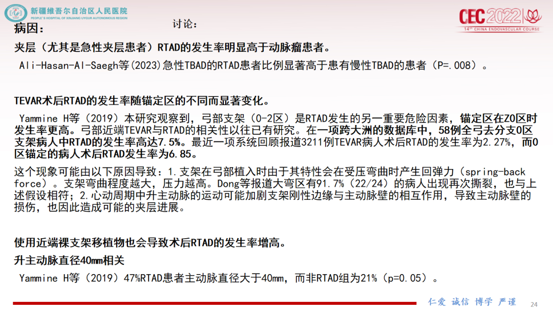 Yammine H等(2019年)分析2012年1月至2017年1月收治的186例TEVAR的TBAD,共有15例出现RTAD,该研究队列中,RTAD发生率为8%。