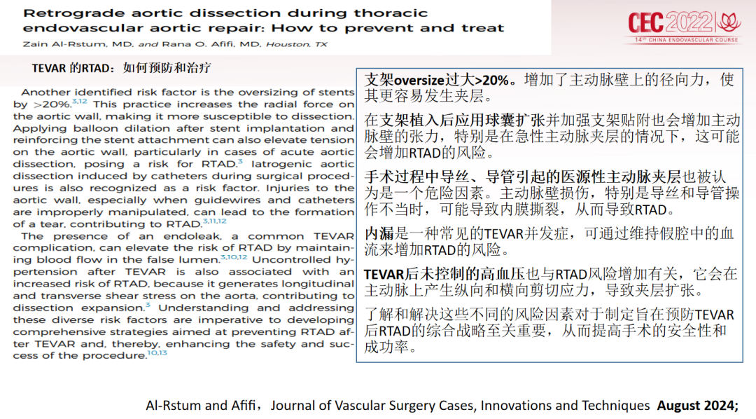 RTAD是TEVAR术后最严重的并发症之一,发病率低,但死亡率高。