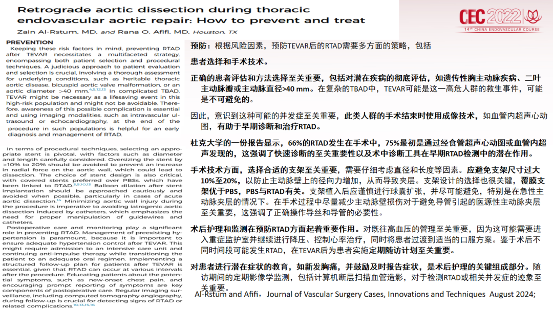 预防RTAD需要综合考虑患者个体情况和手术技术。术后要特别重视定期随访和症状监测。