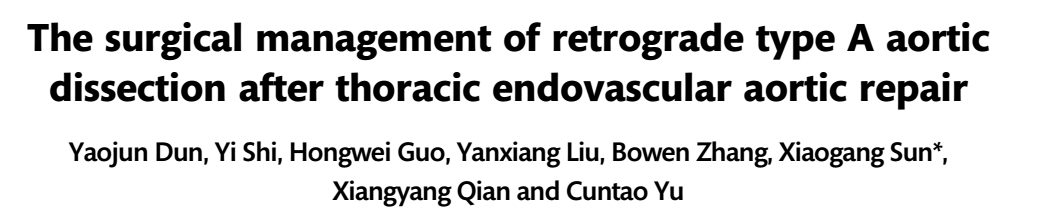 伴或不伴有支架象鼻技术的全弓置换术适用于TEVAR后RTAD的治疗,具有可接受的早期和长期效果。