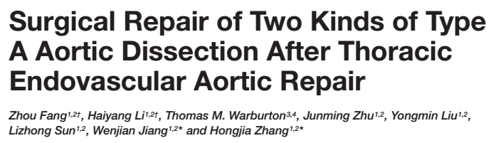 回顾我中心TEVAR后逆行A型主动脉夹层的手术治疗情况。