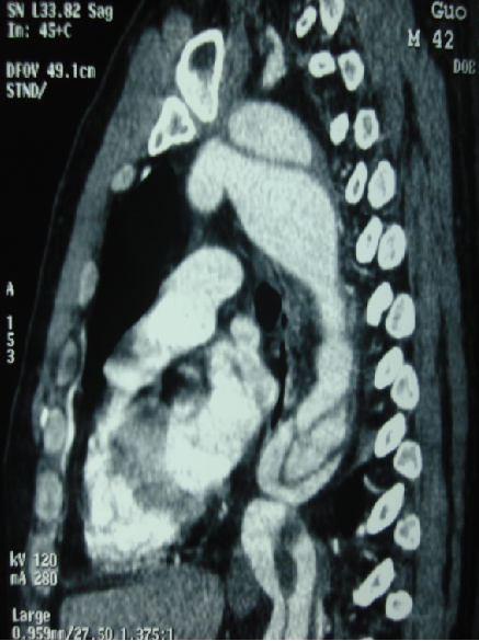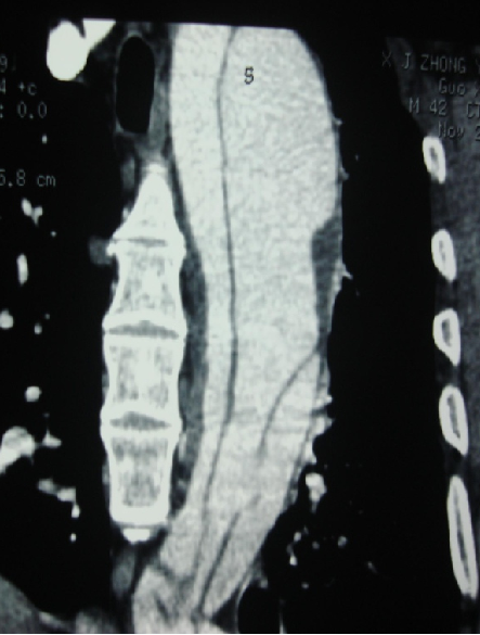 男性,44岁,慢性B型夹层。2010年12月行TEVAR术。