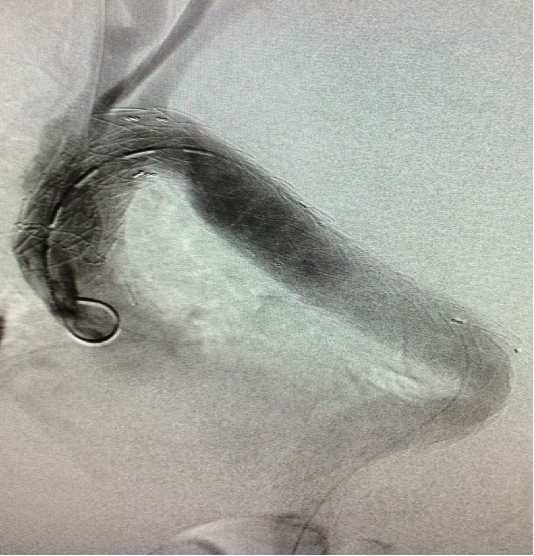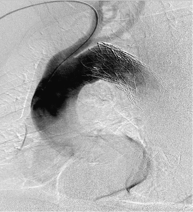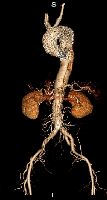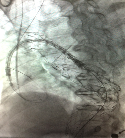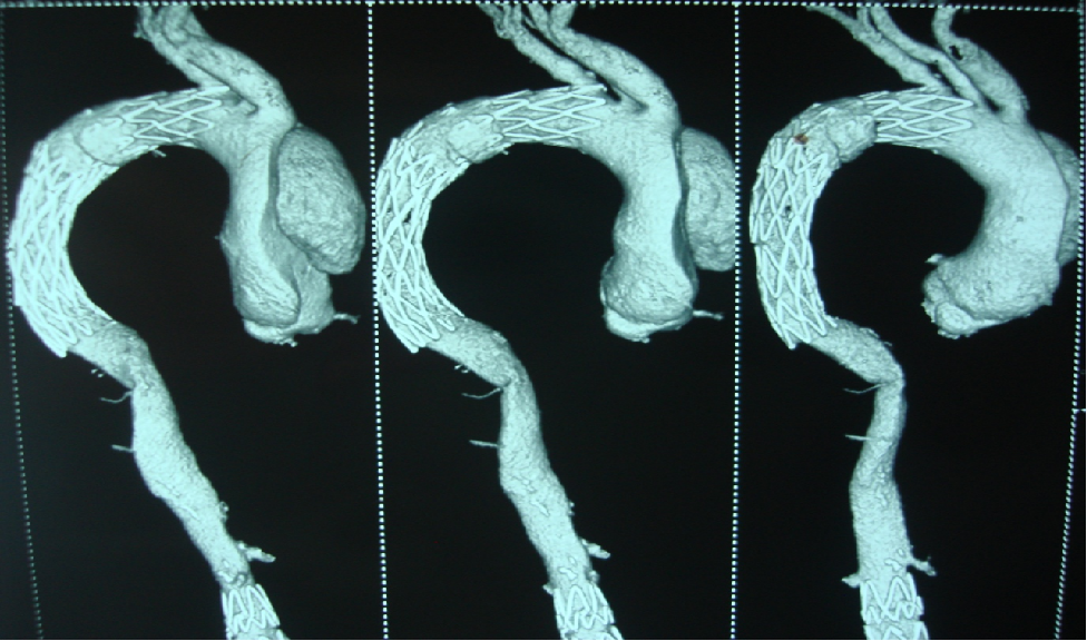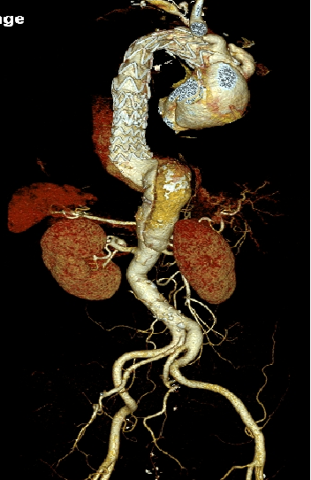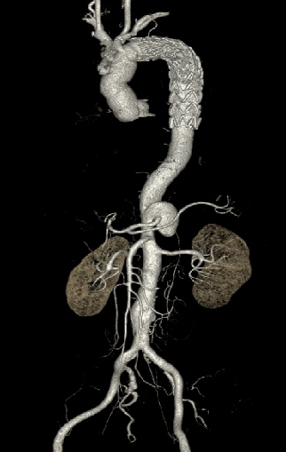 男,52岁,慢性夹层。2015年8月入院,4年前曾因B型层行TEVAR术,主动脉解剖变异,扭曲。行双烟囱+TEVAR术。术后第3天RTAD ,死亡。