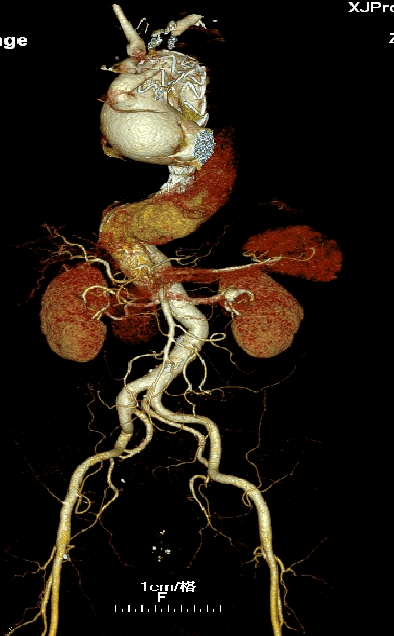 男,49岁,急性AD。2019年1月TEVAR,3月RTAD,行全弓置换+支架象鼻。2022 年1月25日术后复查,结果良好。