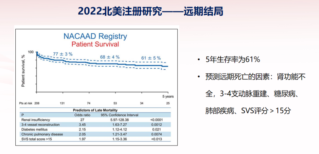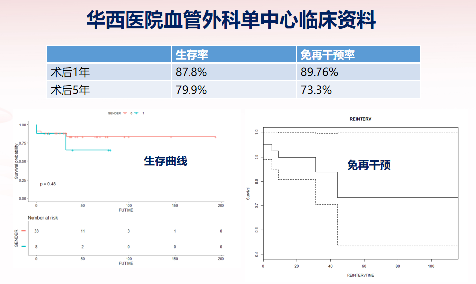 长期效果:5年生存率79.9%,免于再干预率73.3%