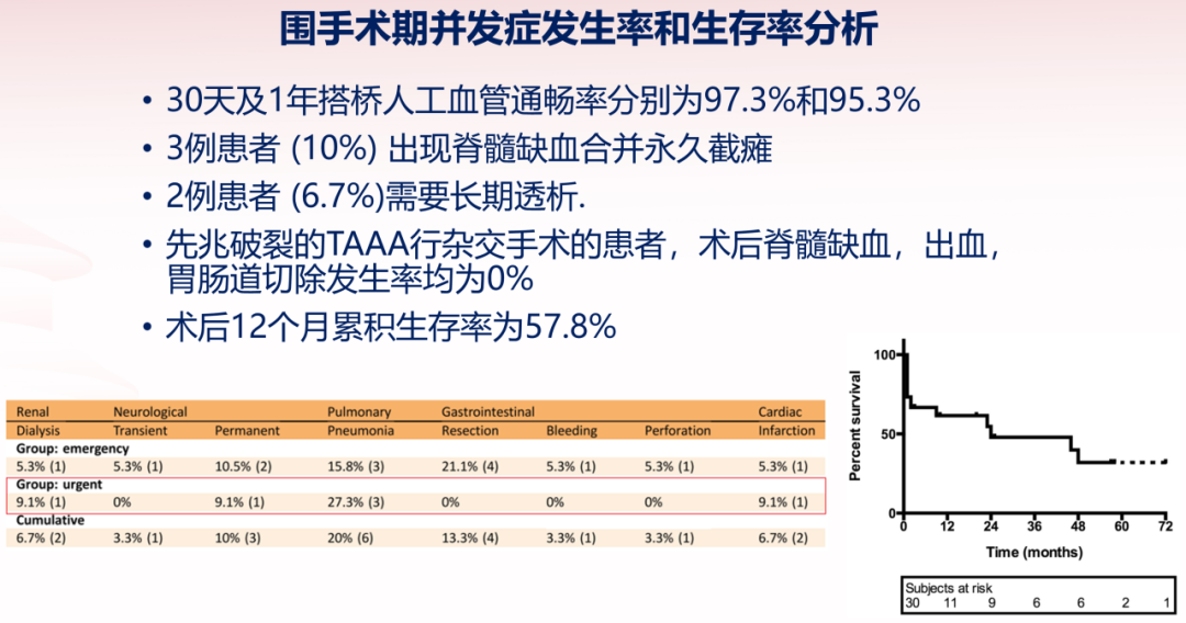 并发症:截瘫7.3%(3例)、肾衰4.9%(2例)、再干预4.9%(2例)