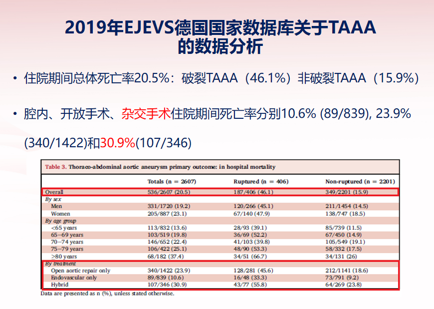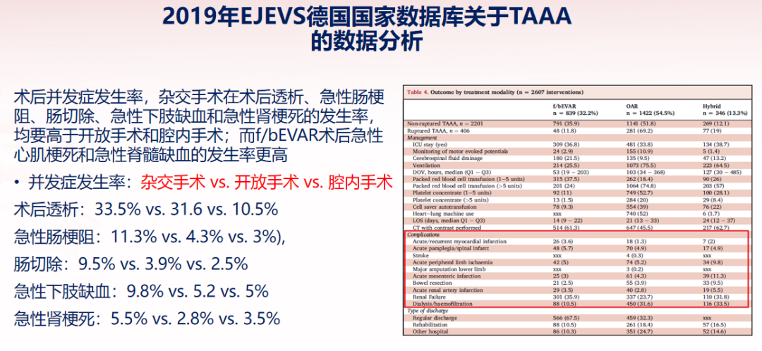 德国国家数据库关于TAAA的数据:杂交手术相较于开刀手术、腔内手术在住院死亡率、多个并发症发生率方面更高