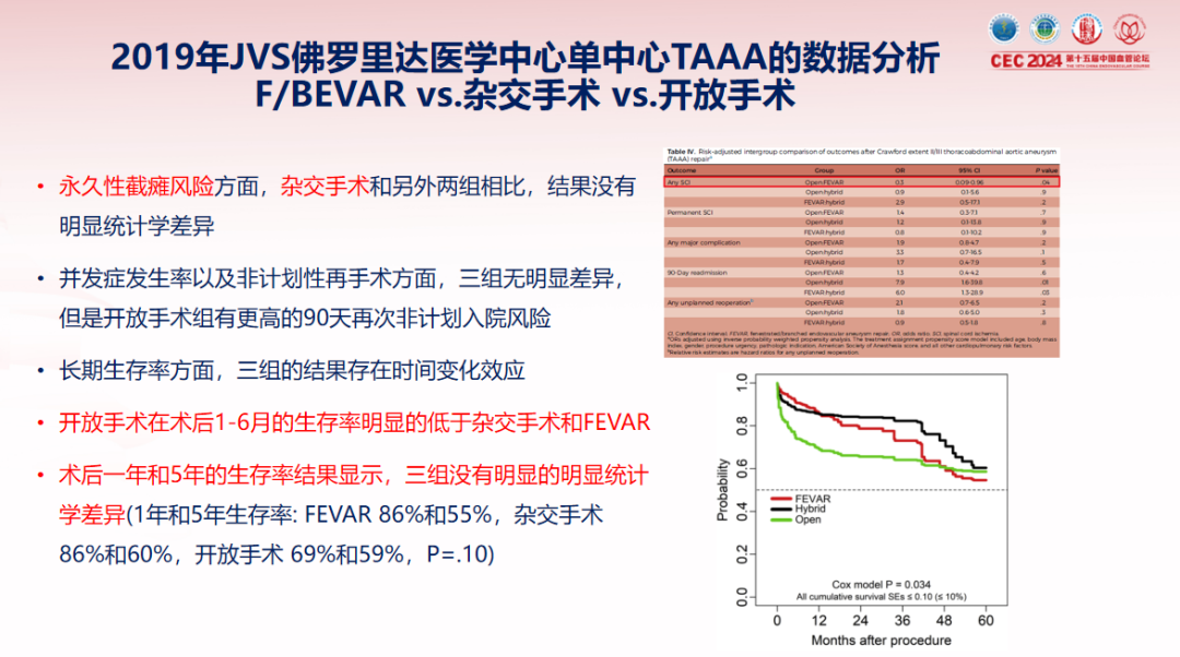 佛罗里达医学中心单中心结果:杂交手术的30天死亡率、截瘫发生率以及5年生存率方面,与开放手术、腔内手术对比无差异