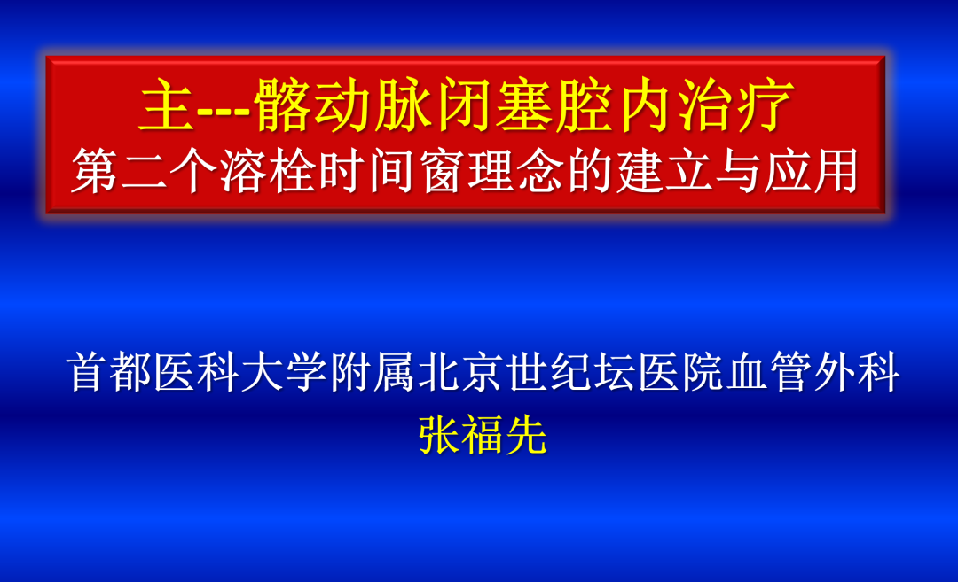 CEC2024 | 张福先教授:主髂动脉闭塞腔内治疗--第二个溶栓时间窗理念的建立与应用