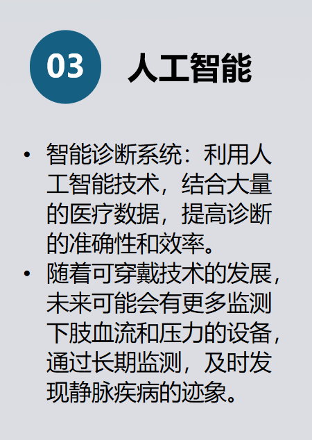 AI辅助影像分析、可穿戴设备监测血流,推动早期筛查。