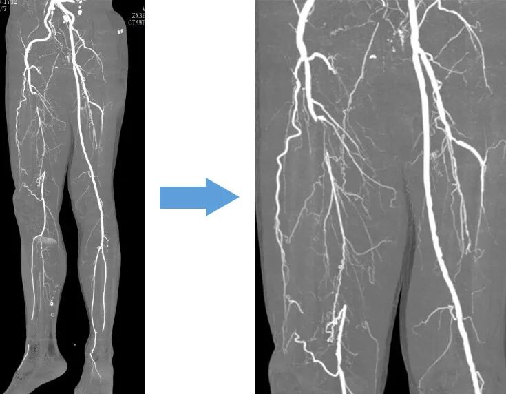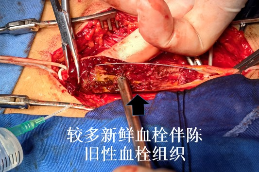 该患者结合术前影像资料及病情大致评估以为仅是单纯的下肢动脉硬化闭塞继发血栓形成,但术中的实际情况再次提醒并反馈新的问题出现,并对手术治疗提出了更高的要求。因此,提示我们术前的评估仍需更加严谨仔细,特别是横断面的影像情况亦需追踪到位。