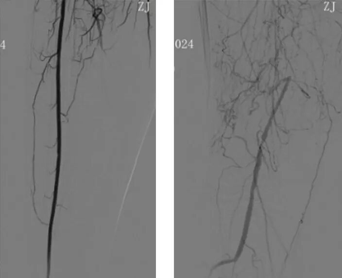 2、右股浅远端部分侧枝代偿至腘动脉(提示慢性闭塞为主)