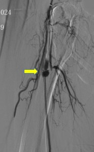 4.进一步造影见右股浅动脉近端瘤样扩张,伴局部造影剂滞留现象。