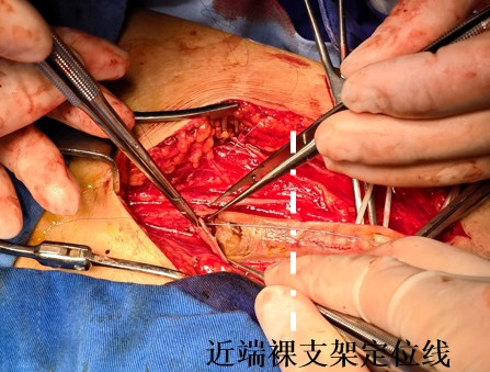 (2)术中下一步方案策略:方案一:此区域置入覆膜支架;方案二:转开放手术进一步探查。