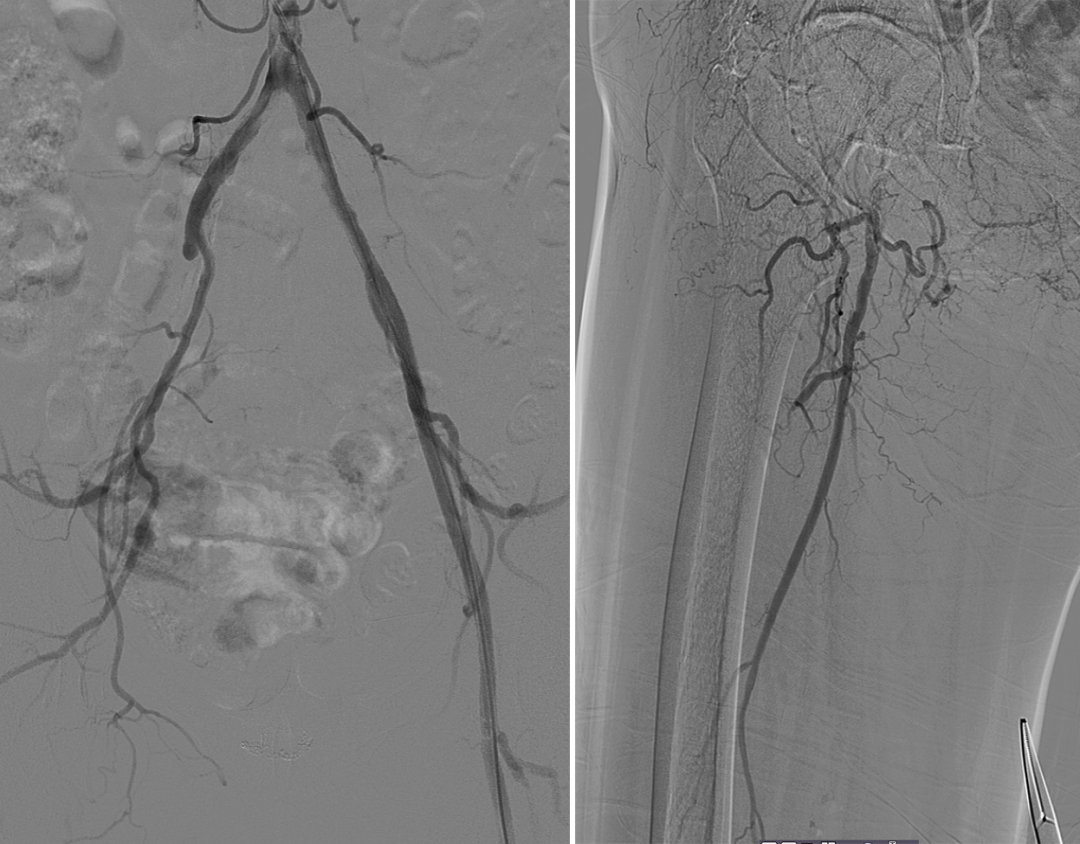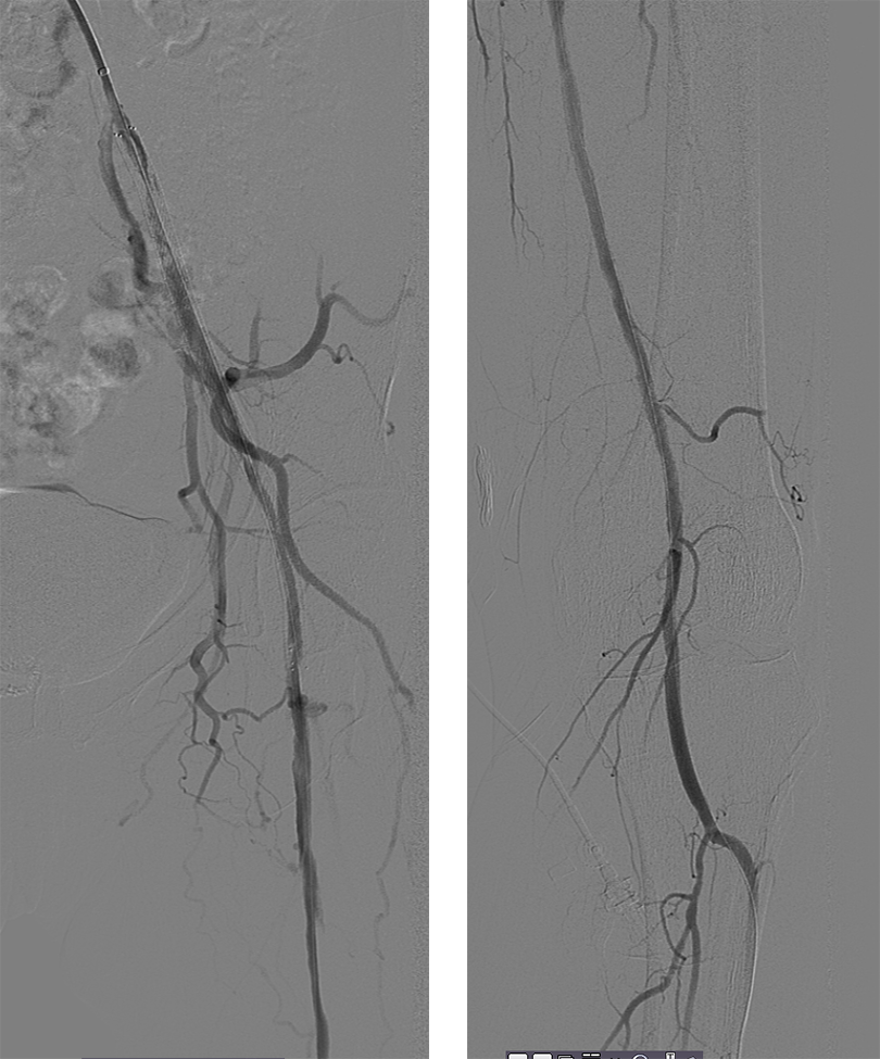 1、术后右下肢皮温明显转暖,继续予以利伐沙班抗凝、西洛他唑抗板治疗。但1月后患者出现左下肢间歇性跛行。