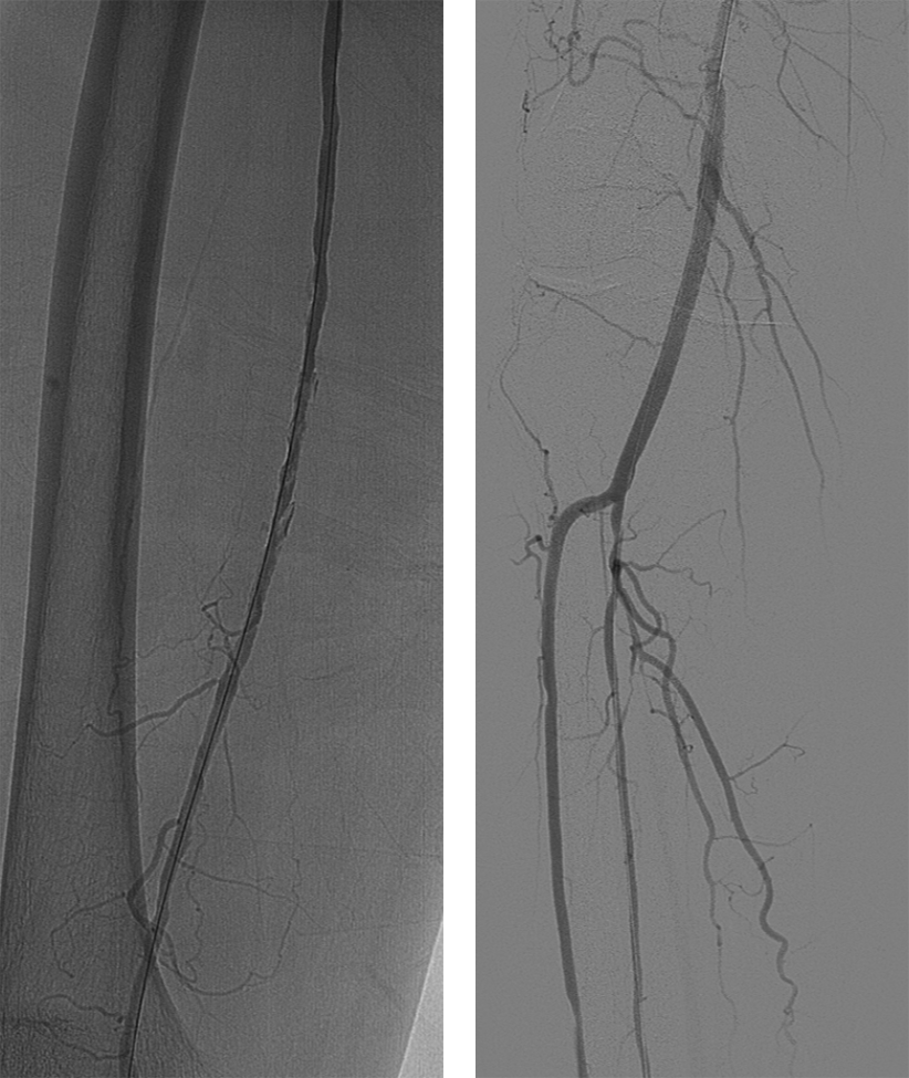 局麻DSA下行右下肢动脉血栓清除+球囊扩张+支架植入