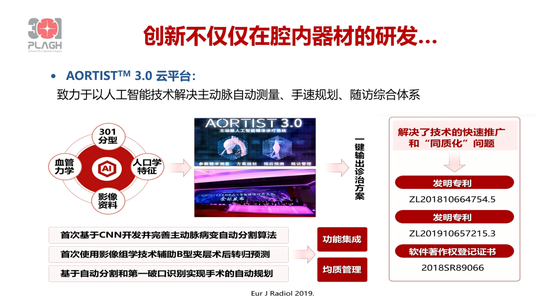 赋能行业:人工智能与云平台:打造了 AORTIST™ 3.0 云平台,致力于以人工智能技术解决主动脉自动测量、手术规划、随访综合体系。“这些事情可以大幅的缩减医生的年轻医生的学习曲线。”